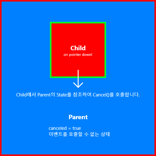 /// * PointerDown: 상위 위젯의 [cancel]을 호출하고 상위 위젯이 트리거되지 않도록 정의합니다.